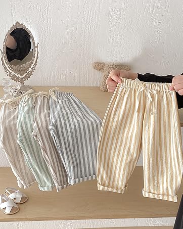🔥 Why Choose Ashmyova Classic Casual Pants for Boys Thin Cotton Stripe Elastics Waist Spring Summer Trousers Toddler Long Pants 2Pcs?