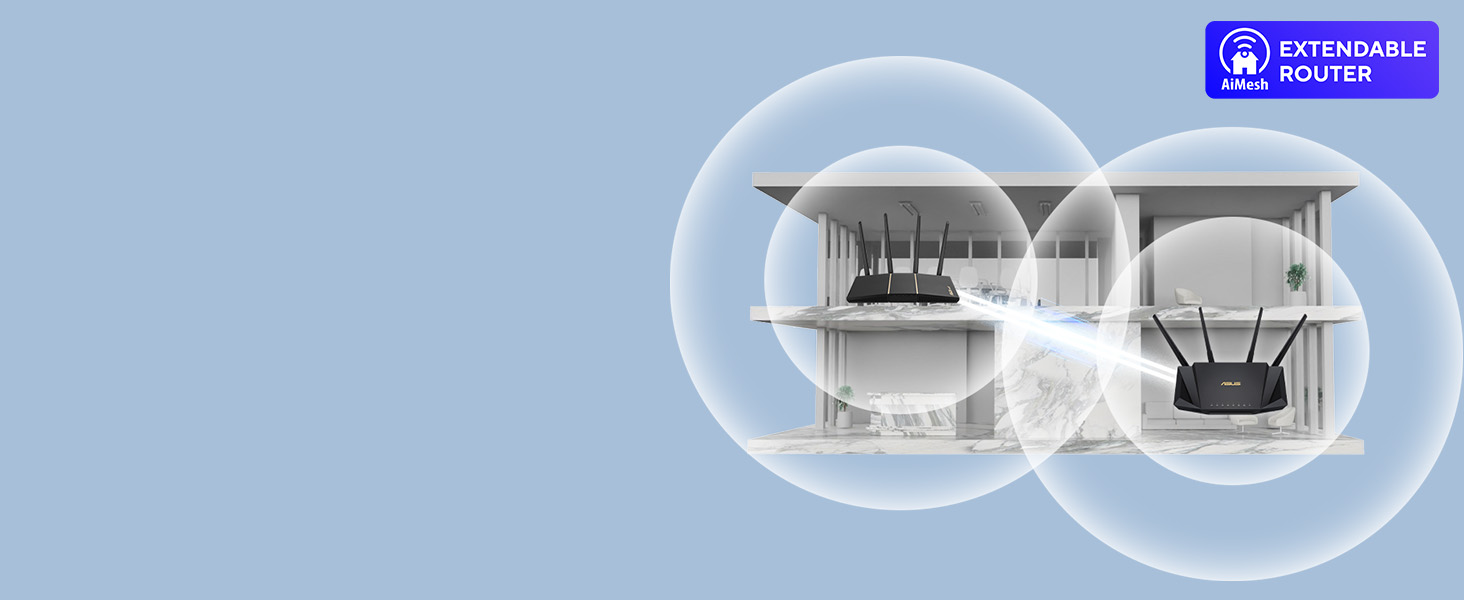 The Most Powerful Mesh System — AiMesh technology allows you to establish an even stronger mesh WiFi system with other ASUS AiMesh compatible routers, ensuring stable and seamless whole home coverage.