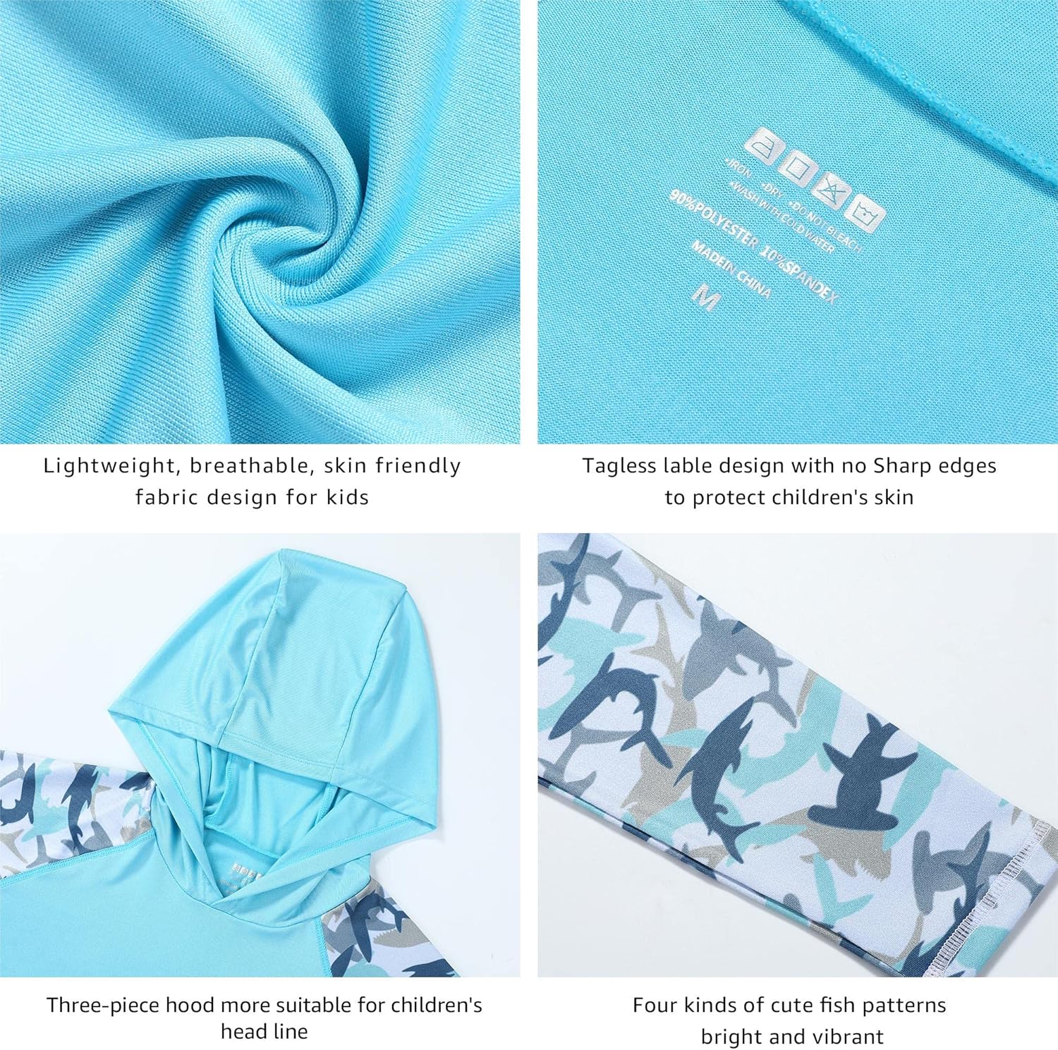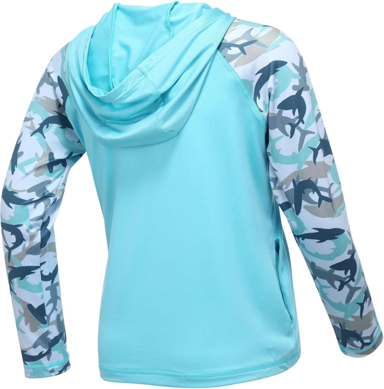 Boys UPF 50+ Swim Hooded Shirt with Pocket/Non-Pocket, Youth Kids SPF UV Sun Protection Rash Guard Long Sleeve Fishing Shirts