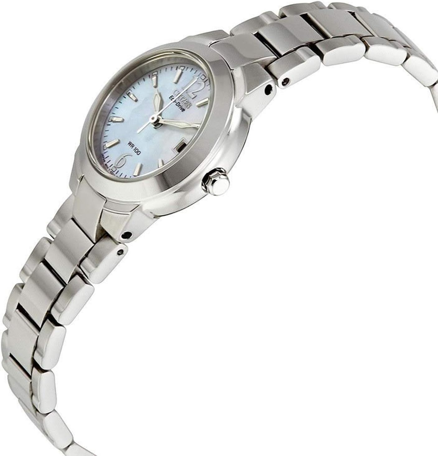 Model Number EW1670-59D Collection Ladies Dress Classic Movement Eco-Drive Technology – Never Needs a Battery Base Movement E011 Clasp Type Fold Over Clasp with Push Buttons Dial Color White Mother-of-Pearl Case Material Stainless Steel Case Diameter 26mm Band Material Stainless Steel Crystal Material Mineral Crystal Water Resistance 100M Dial Features Luminous Hands and Markers