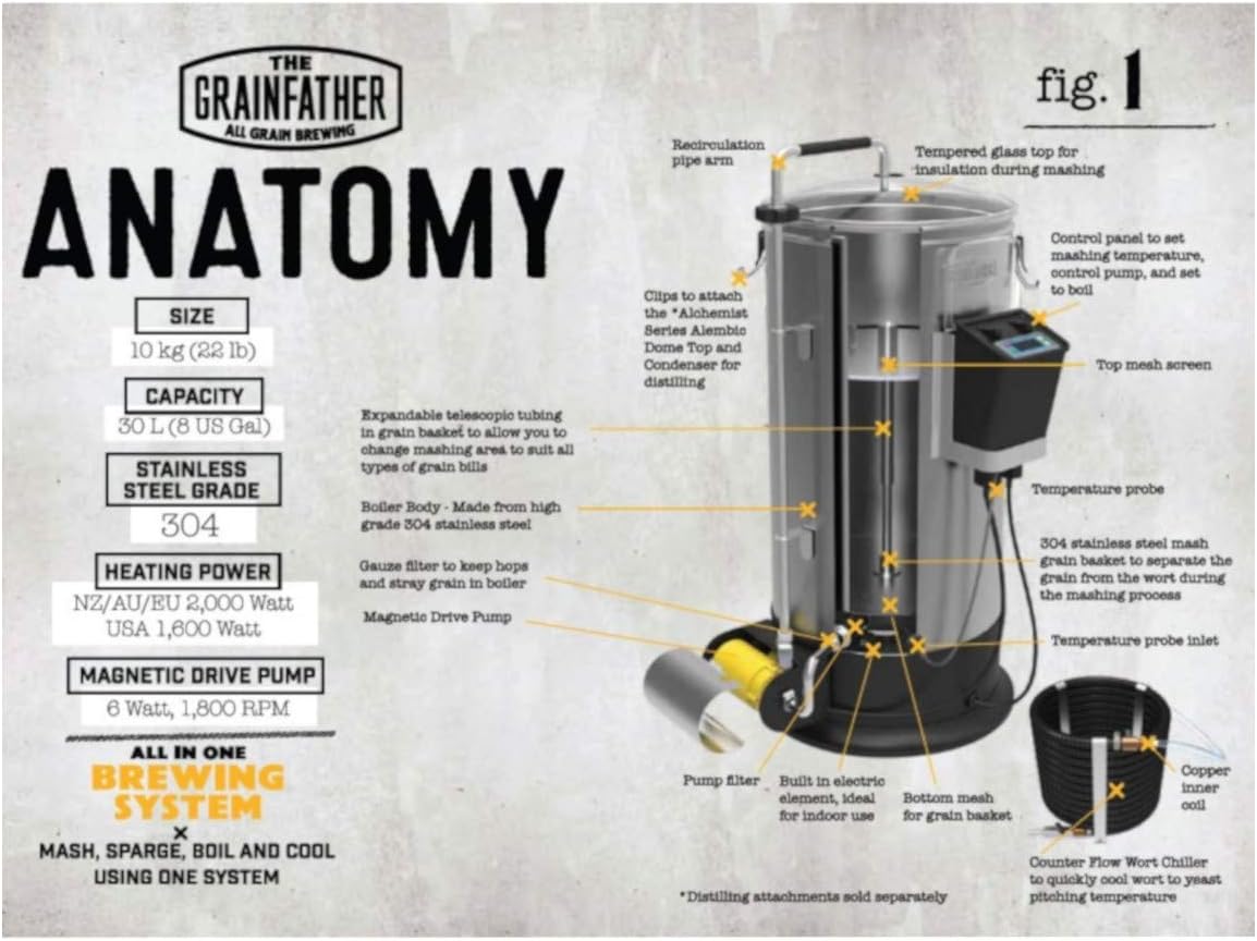 SIMPLE AND USER FRIENDLY: The Grainfather is electrically powered and designed to be used indoors; No need for burners or hot plates; just plug in and go; Heating from mash to boil takes as little as 20 minutes; Instructions included; Instructional videos available on manufacturer website