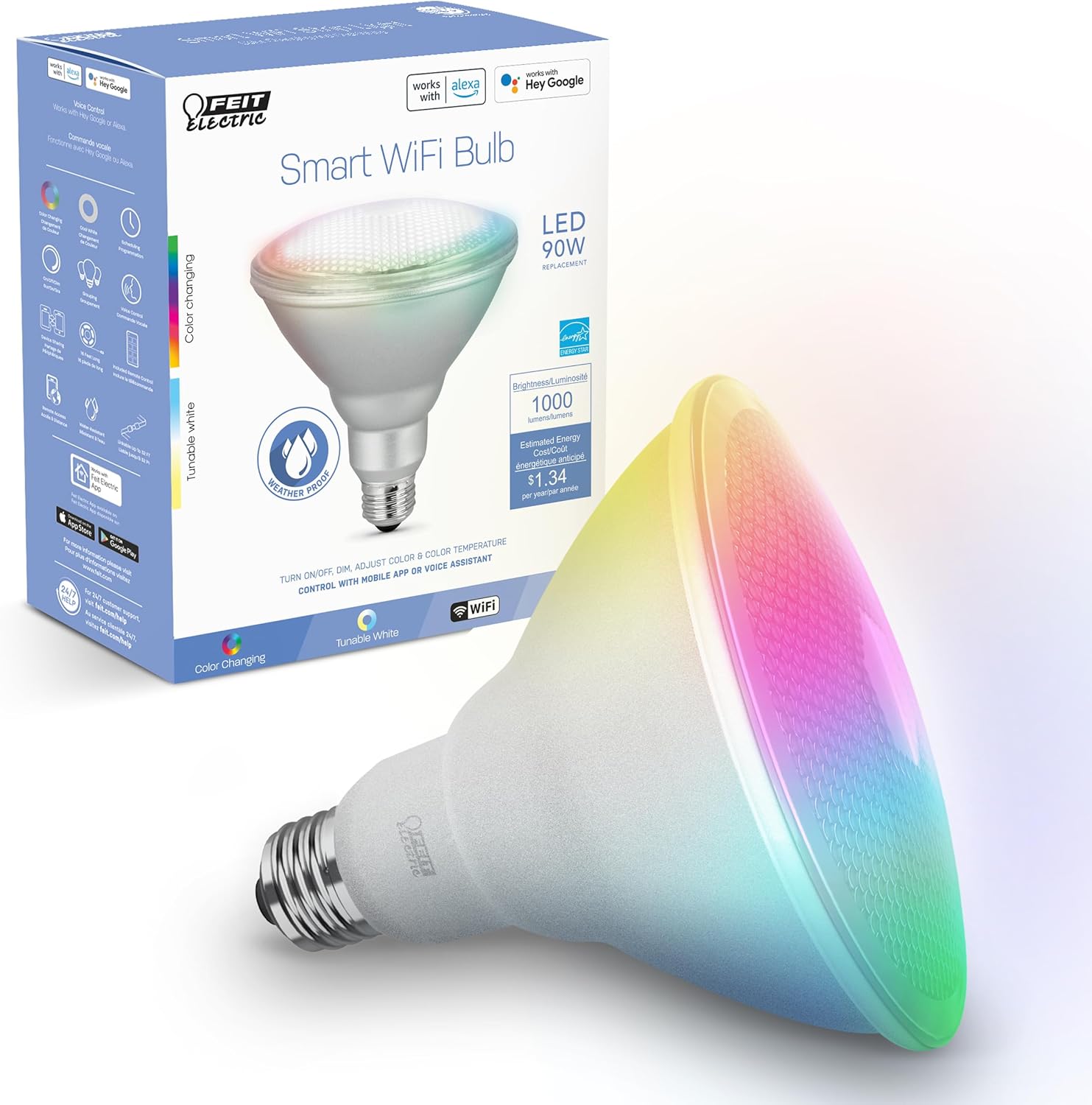 🔥 Why Choose Feit Electric PAR38/RGBW/CA/AG 90 Watt Equiv, 2.4 GHz WiFi Only, No Hub Required, Color Changing and Tunable White?