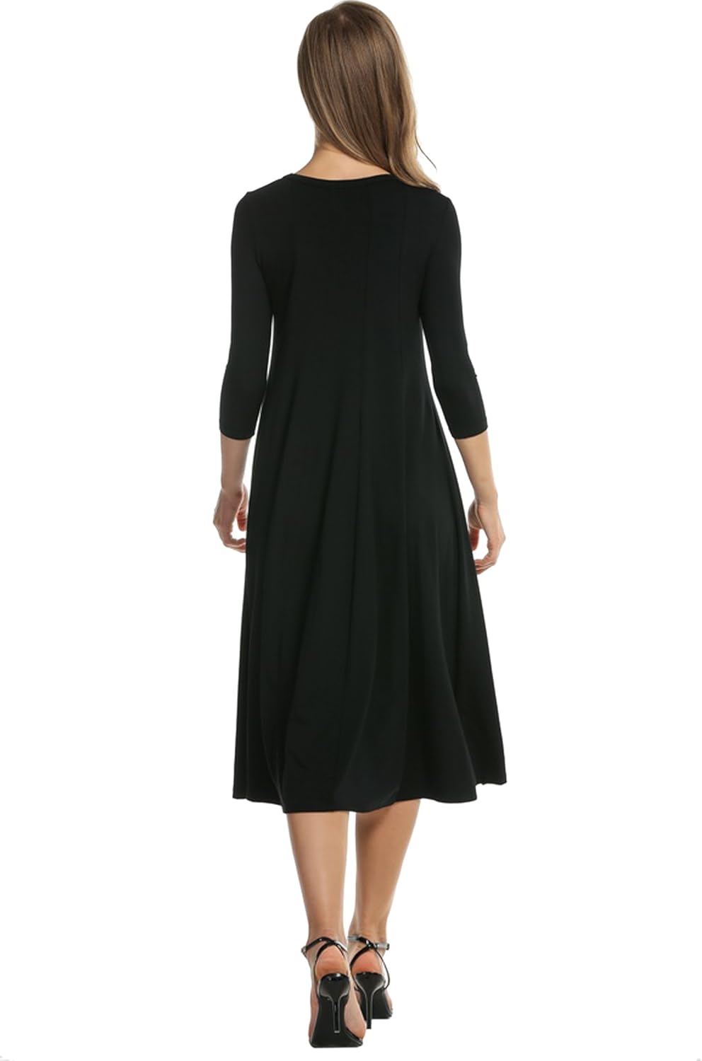 HOTOUCH Women’s 3/4 Sleeve A-line and Flare Midi Long Dress