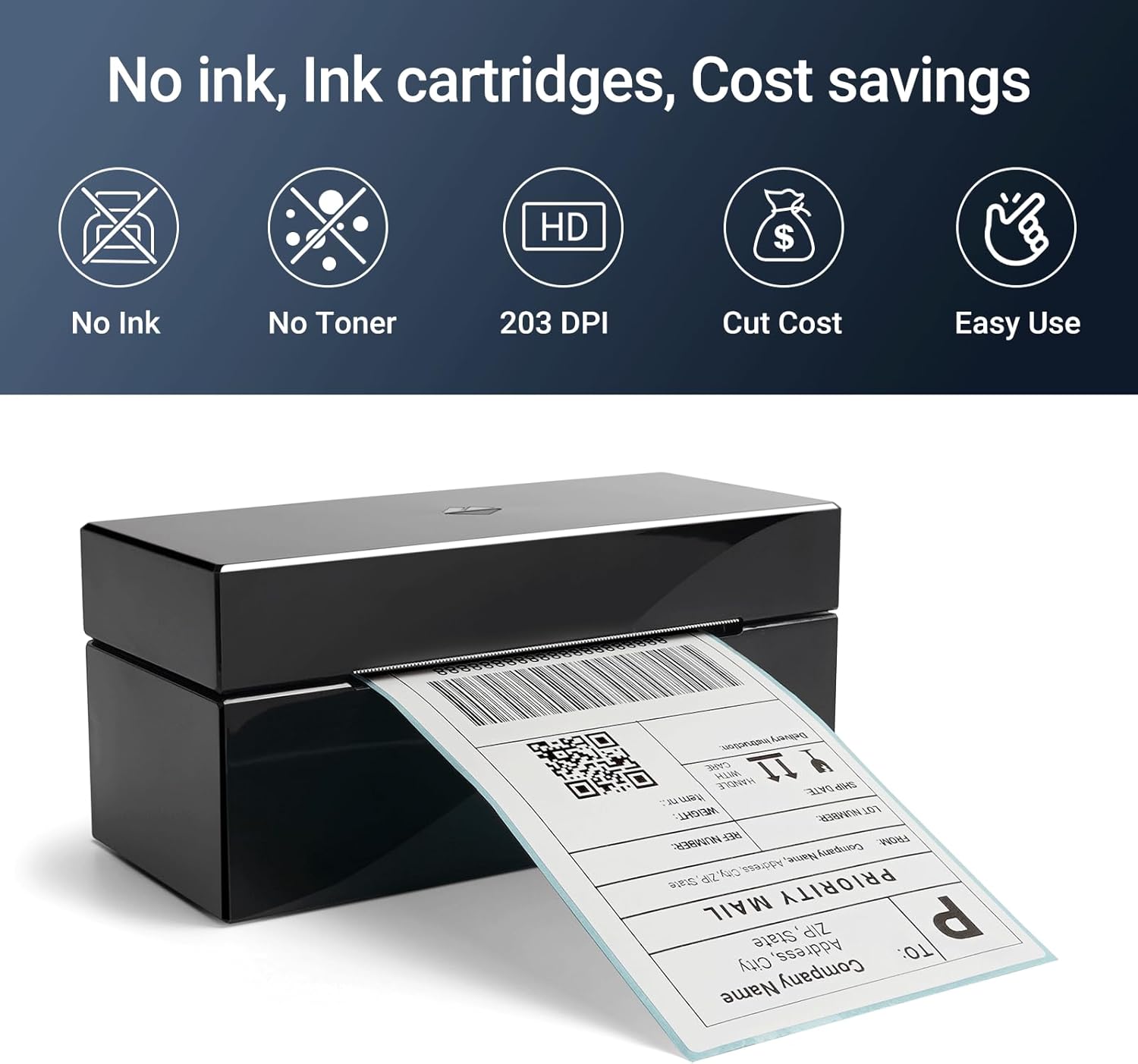 Cost-Effective: Advanced thermal direct printing technology eliminates the need for ink or toner, reducing consumable costs; Use folded labels or roll labels