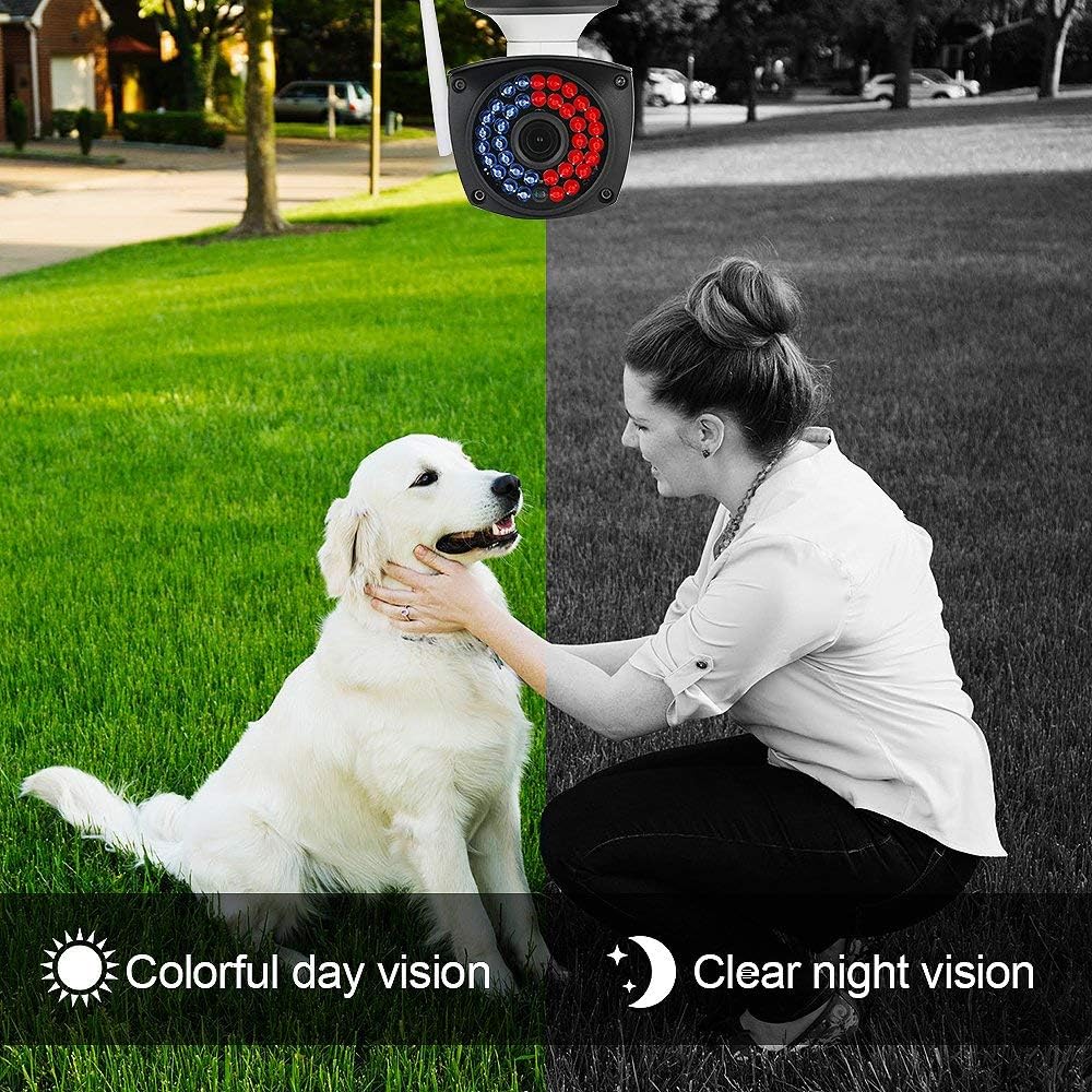 This wifi outdoor camera is displays images in 1920 x 1080, equipped with 36 pcs IR led lights, the night vision reaches up to 67ft or further, you can see everything clearly no matter day and night!