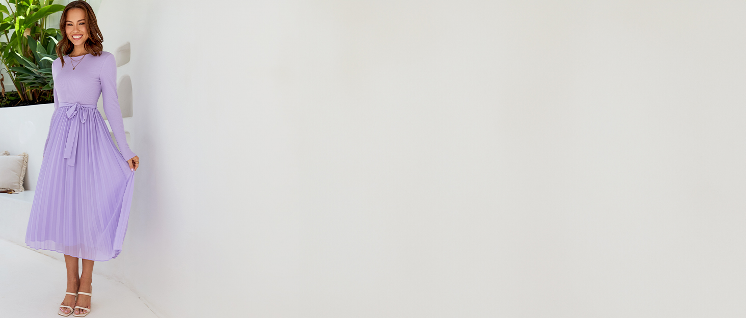 🔥 Why Choose ZESICA Women’s Fall Long Sleeve Midi Dress Casual Crewneck Knit Belted Pleated A Line Flowy Party Dresses?